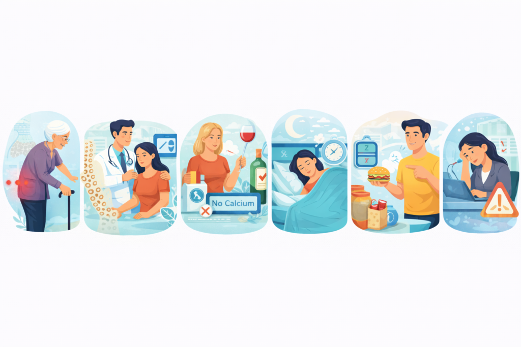 - Avoid smoking and alcohol – These weaken bone strength